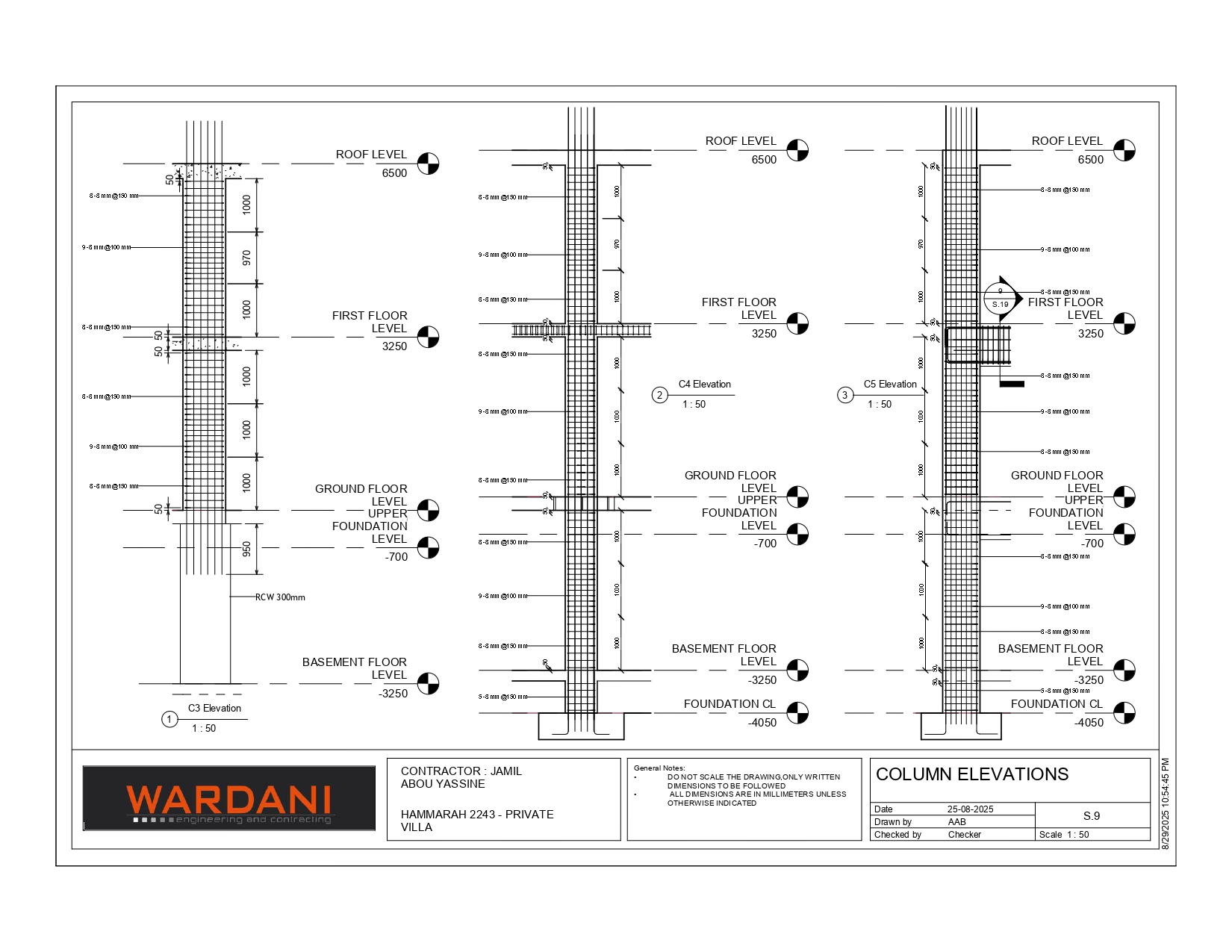 The HGRV project involves the structural design of a modern residential villa, with the goal of ensuring safety, durability, and efficiency. The design provides a stable structural system capable of supporting architectural requirements while complying with relevant building codes and standards