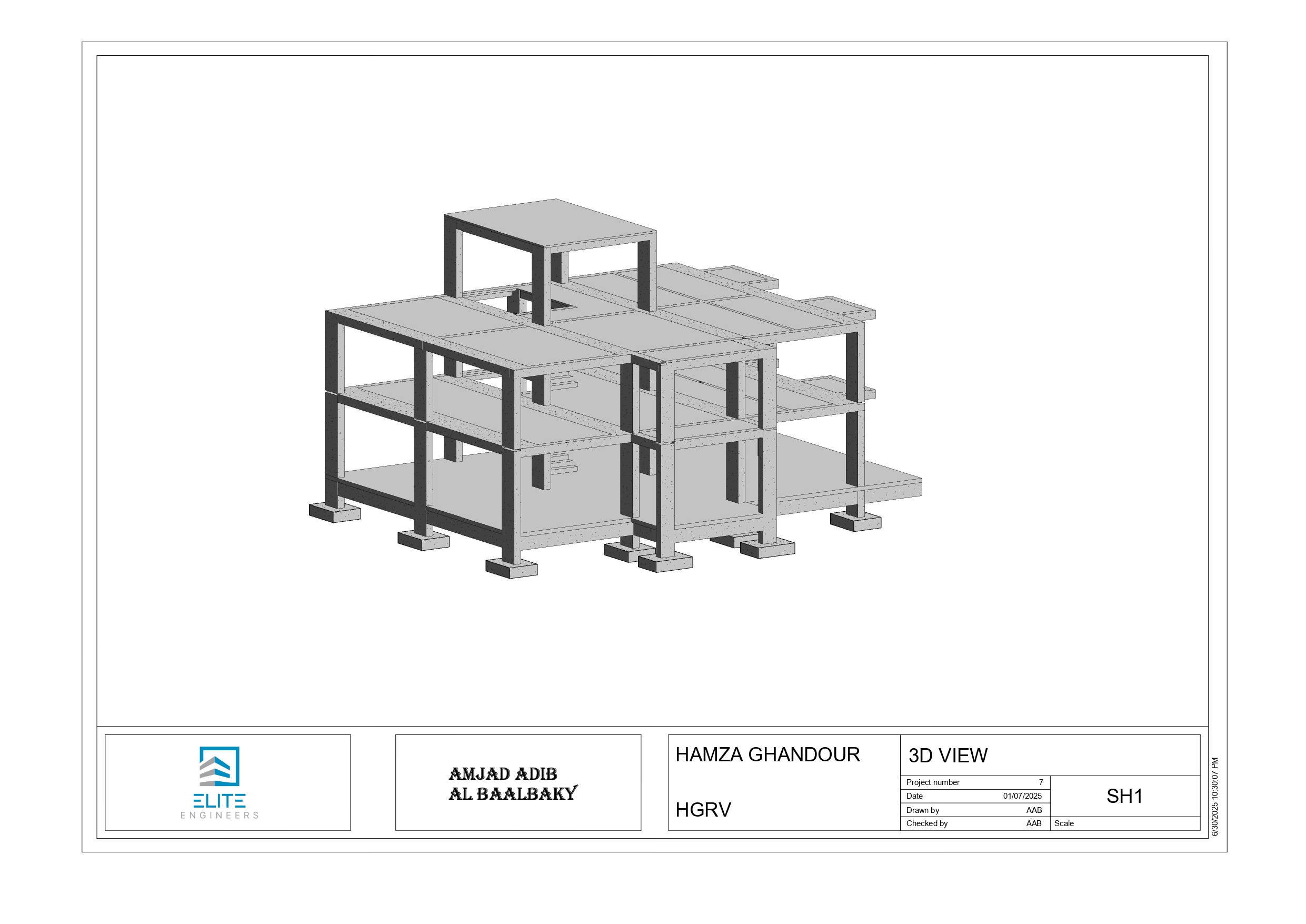 The AGRV project involves the structural design of a multi-story residential villa with a swimming pool beside it located in Kamed al lawz, West Beqaa, Lebanon. As the structural designer , I was responsible for modeling and analyzing the building’s structural system using ETABS and SAFE, ensuring full compliance with Lebanese seismic and design codes.